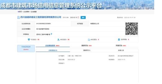 根據(jù)2021年印發(fā)的《成都市建設(shè)工程質(zhì)量檢測機(jī)構(gòu)及檢測人員信用評價(jià)管理辦法》,成都市建筑市場信用信息公示平臺(tái)綜合考慮檢驗(yàn)檢測機(jī)構(gòu)在經(jīng)營期間各項(xiàng)表現(xiàn),對獲得表彰、人員管理、設(shè)備管理、檢驗(yàn)檢測環(huán)境管理、檢測能力驗(yàn)證、檢測報(bào)告管理、資質(zhì)運(yùn)行等26個(gè)項(xiàng)目進(jìn)行評價(jià),力求全面客觀評價(jià)檢驗(yàn)檢測機(jī)構(gòu)綜合能力。信用評級(jí)結(jié)果分為4類,最高等級(jí)為A類,表示誠信度較高、各項(xiàng)評價(jià)指標(biāo)較好、質(zhì)量管理水平較好、社會(huì)信譽(yù)較高。