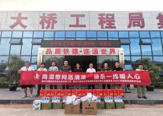 高溫送清涼,關(guān)懷潤人心。為落實(shí)好夏季防暑降溫工作,助力一線生產(chǎn),8月11日下午,重慶設(shè)計(jì)集團(tuán)市建科院公司黨委委員、副總經(jīng)理、總工程師張京街同志赴江南分中心承接的“軌道交通24號線一期質(zhì)量檢測”項(xiàng)目開展慰問活動(dòng),為高溫下堅(jiān)守在項(xiàng)目一線的檢測人員送上清涼慰問品。技術(shù)質(zhì)量安全部和生產(chǎn)經(jīng)營發(fā)展部相關(guān)人員陪同慰問。