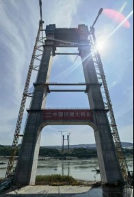 近日,重慶持續連晴高溫、熱浪翻滾,在重山重水的長江之畔,由重慶市建筑科學研究院有限公司承監的世界最大跨徑公軌兩用懸索橋-黃桷沱長江大橋迎來南主塔封頂的關鍵節點,世界級大橋建設進度再次刷新,所有建設者頂著盛夏驕陽,戰高溫、斗酷暑,齊心齊力跑出高質量加速度。