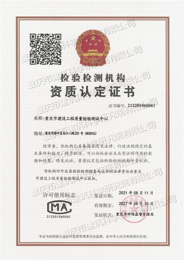 • 檢驗檢測機構資質認定證書