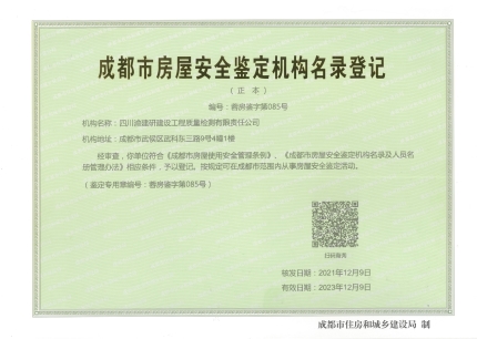 • 成都市房屋安全鑒定機構名錄登記
