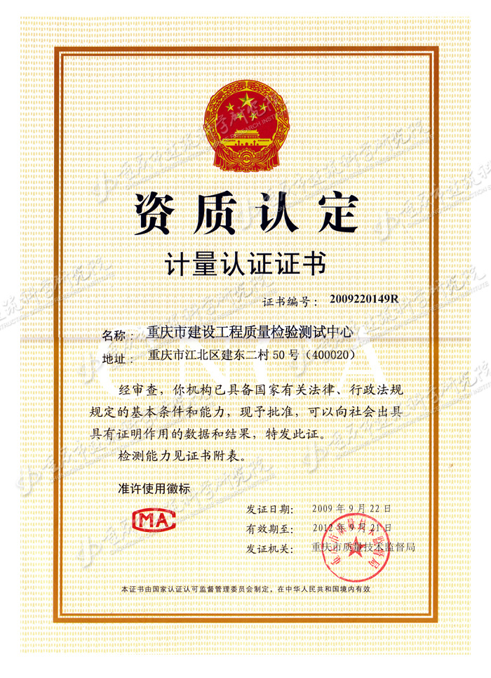 • 計量認證證書