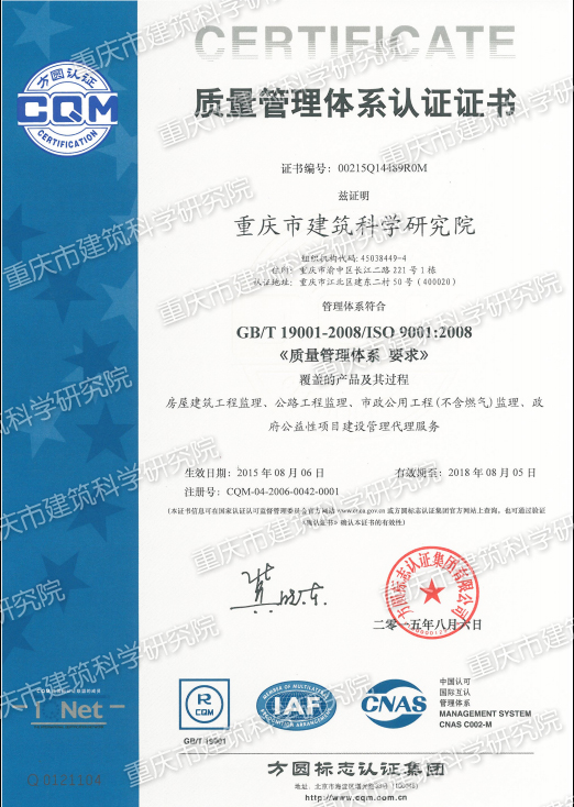 • 質量管理體系認證證書