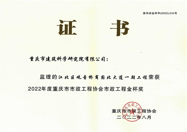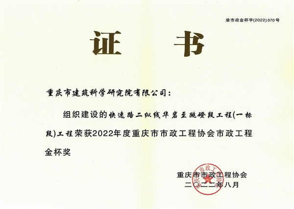 • 2016年市政工程金杯獎